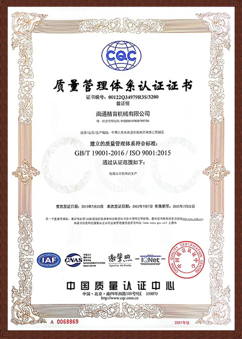 质量管理体系认证证书